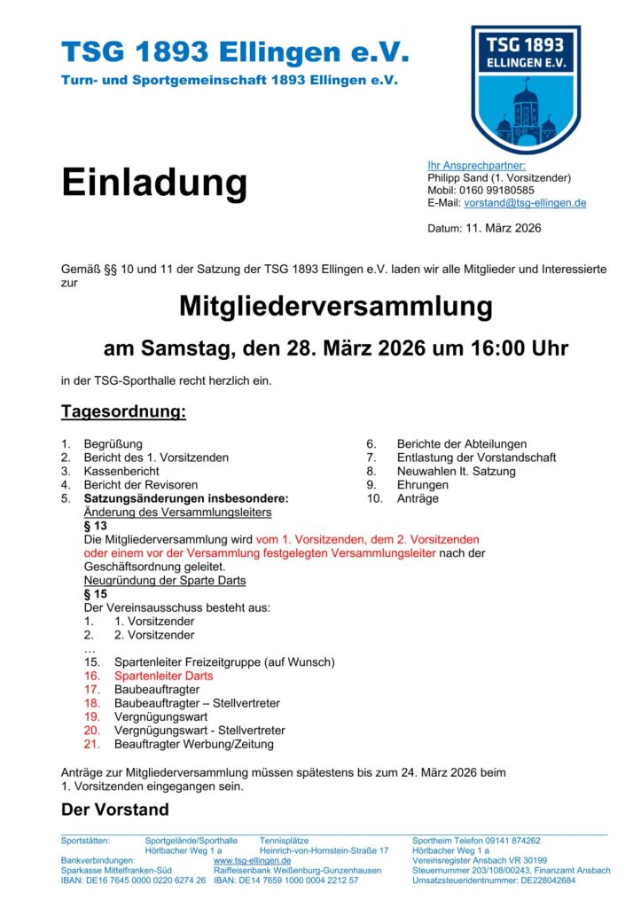 Mitgliederversammlung am 28. März 2026 um 16:00 Uhr